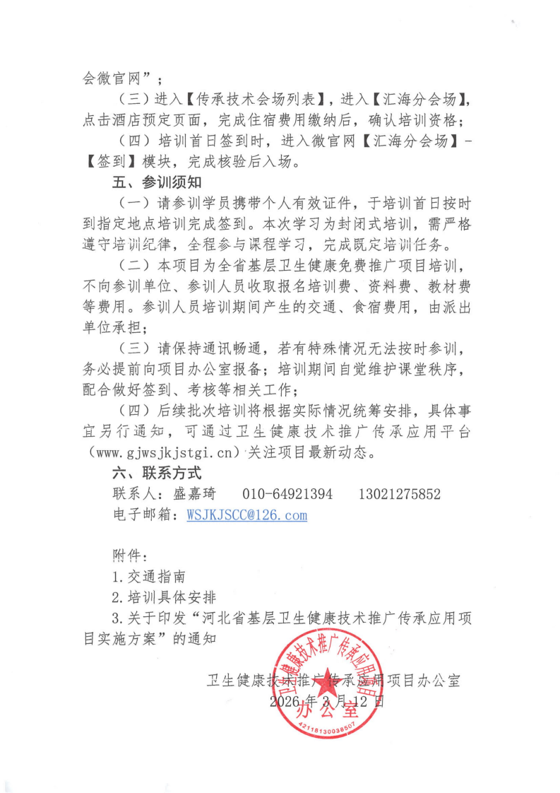 您现在的位置是:首页>工作动态 > 第一期汇海专项培训班开课通知 河北省卫生健康技术推广传承应用项目 发布时间:2026-03-13 15:55:30 来源: 附件:河北省卫生健康技术推广传承应用项目第一期汇海专项培训班开课通知 上一篇:第一期王鹤尧专项培训班开课通知 河北省卫生健康技术推广传承应用项目 下一篇:第一期曹东义专项培训班开课通知 河北省卫生健康技术推广传承应用项目 相关文章